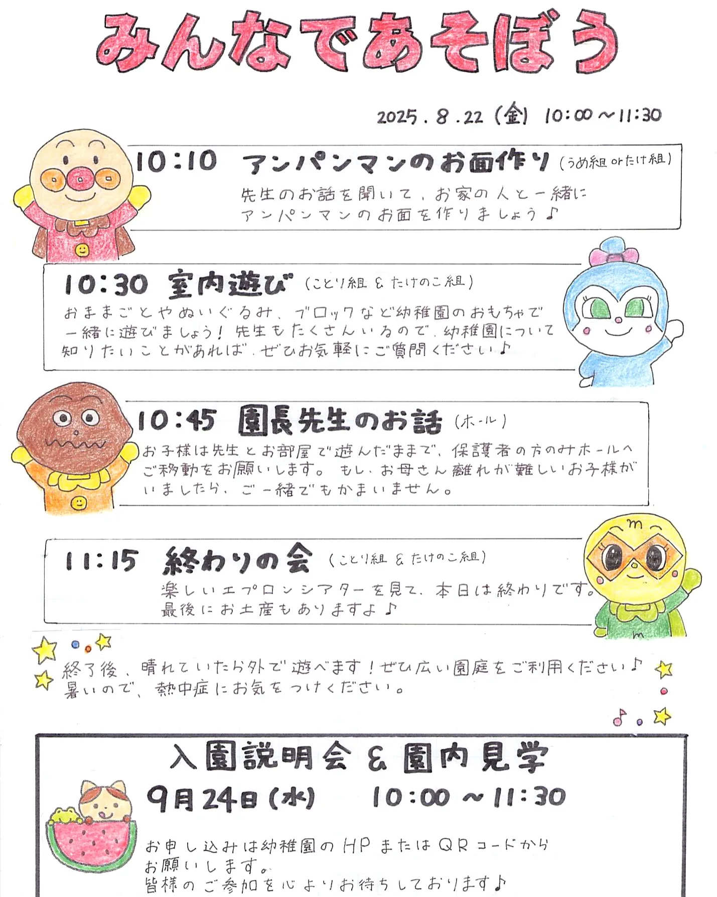 みんなであそぼう(体験保育と入園説明会)の募集が始まりました...