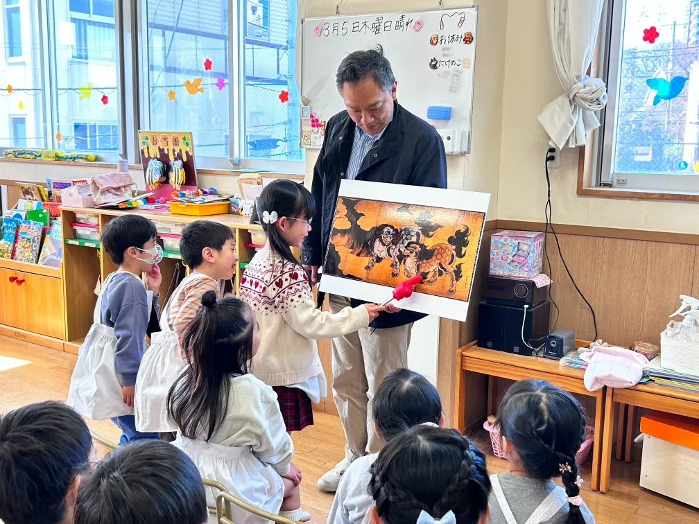 今日は年長の絵画鑑賞最終日。私としては例年最後に持ってくる定番です。様々な意見や解釈がでて、楽しみにしている作品。国宝「唐獅子図屏風」です。もう終盤なので、意見の出方も若干慎重さが見られま…